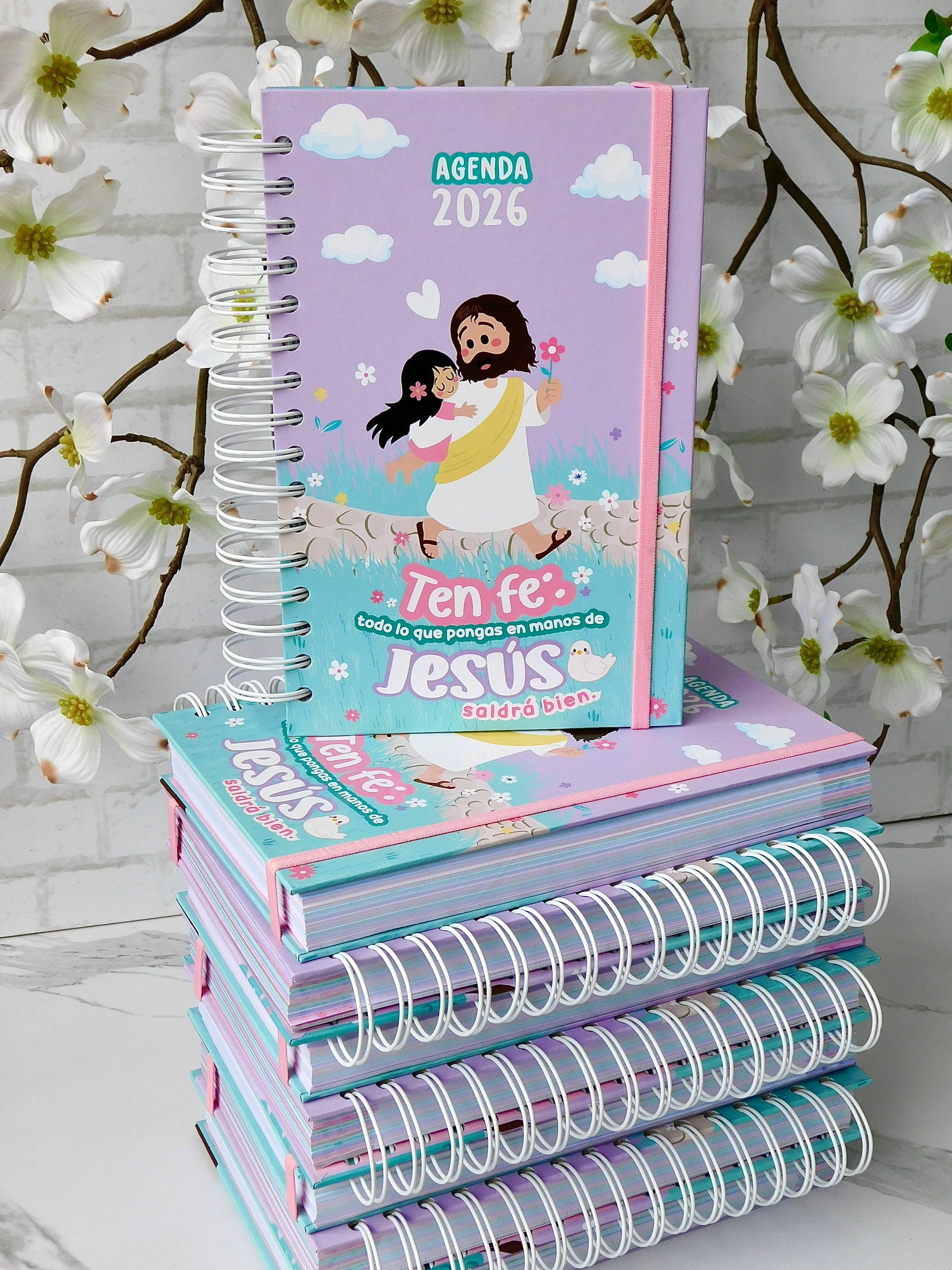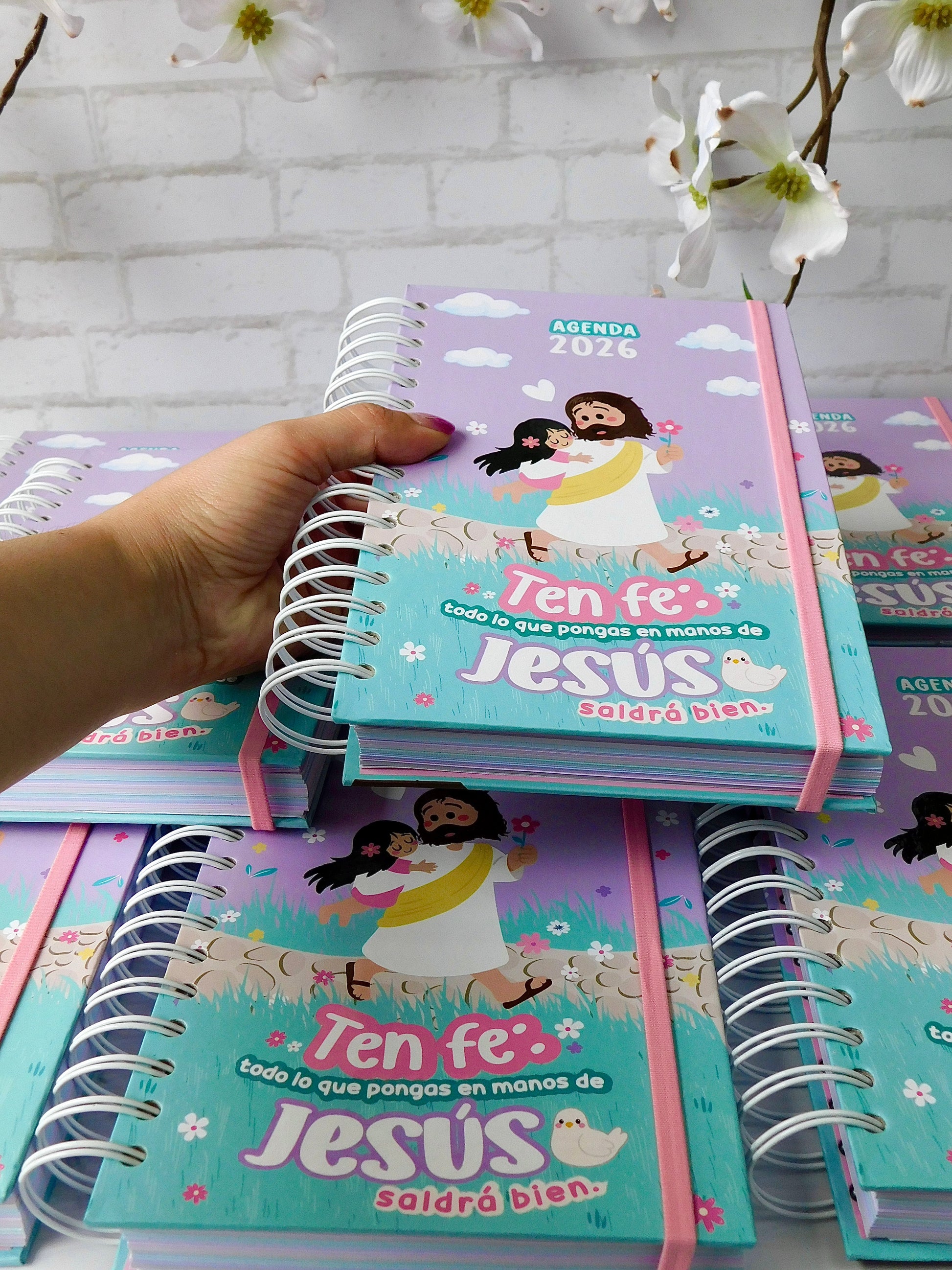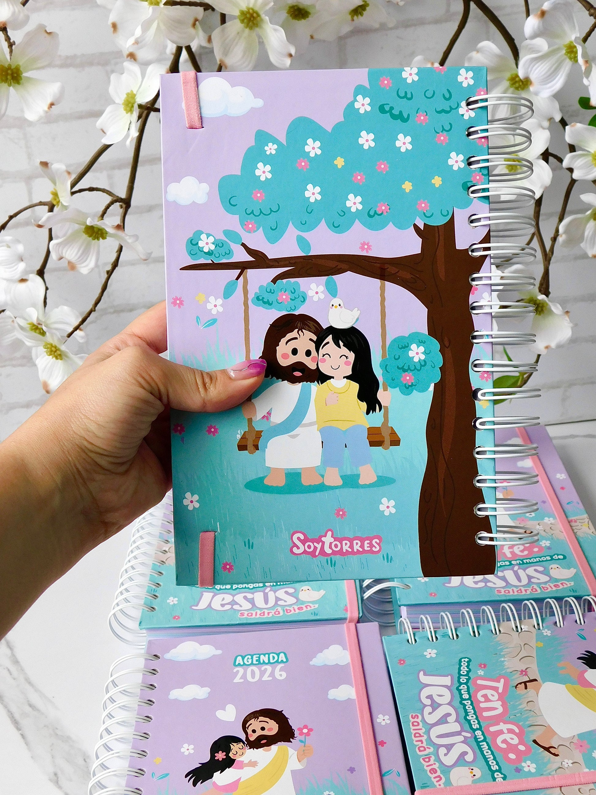 Una agenda creada para acompañarte durante todo el 2026 con mensajes, versículos e ilustraciones que te recordarán cada día que Jesús está contigo 🤍