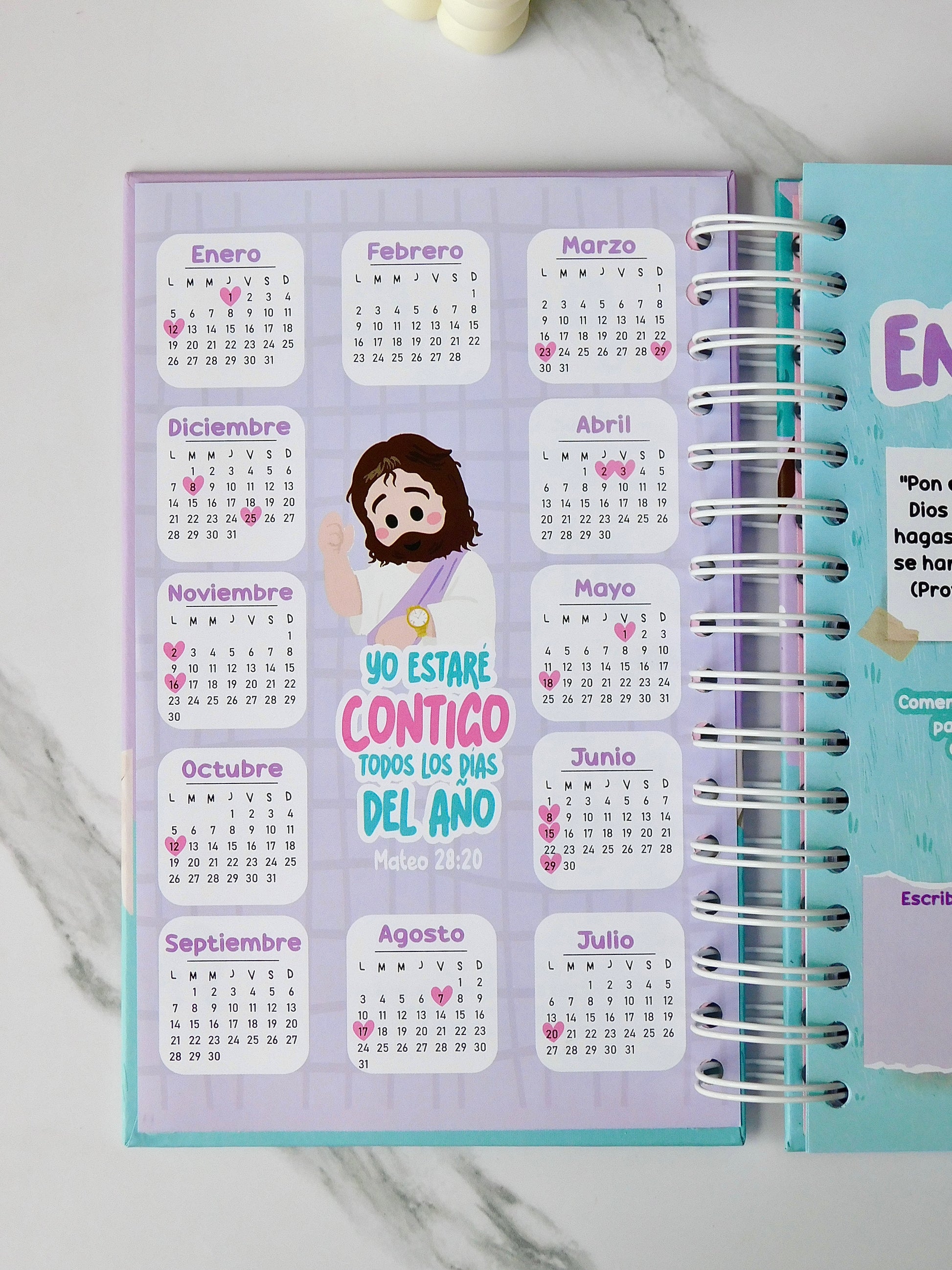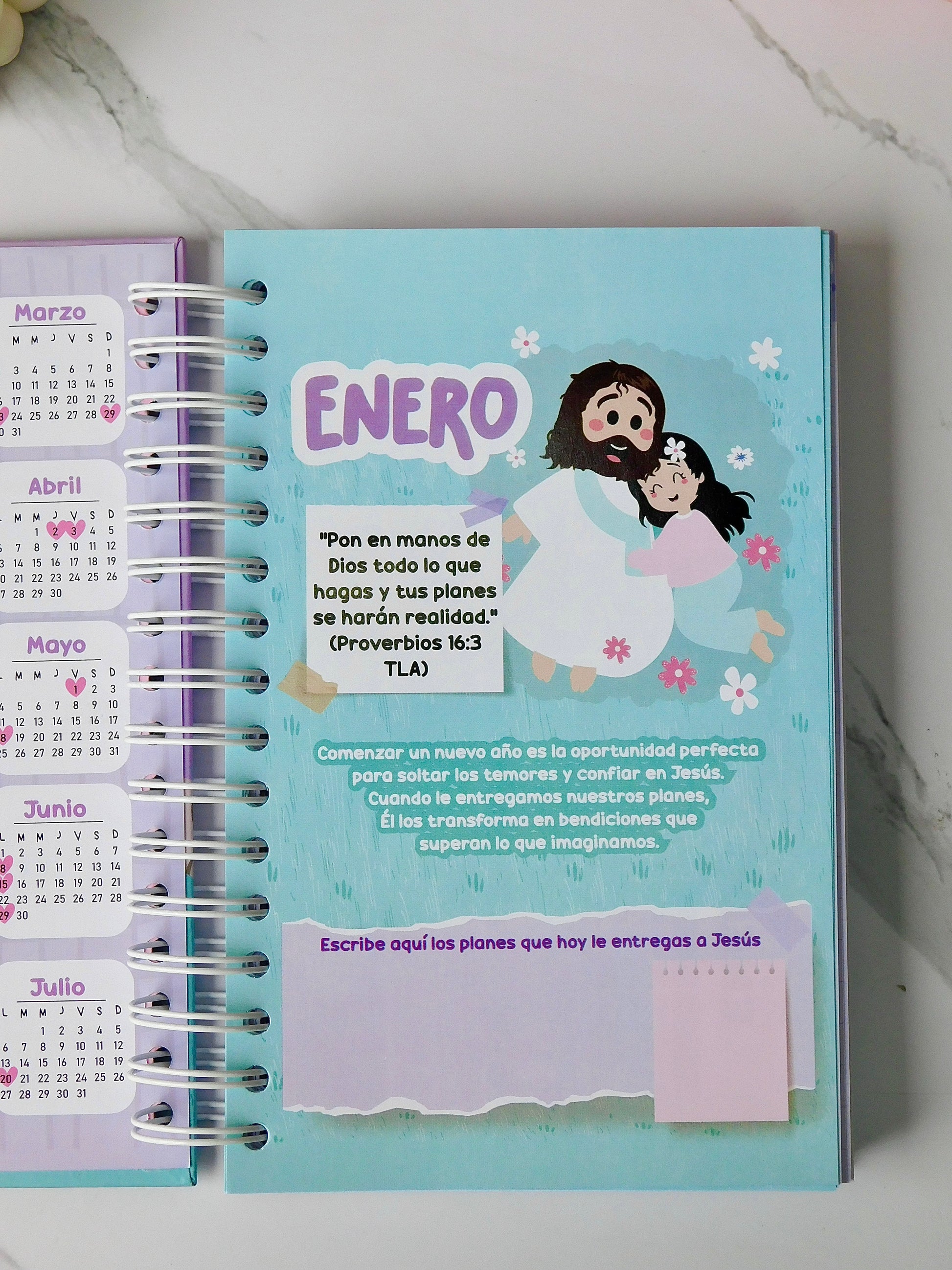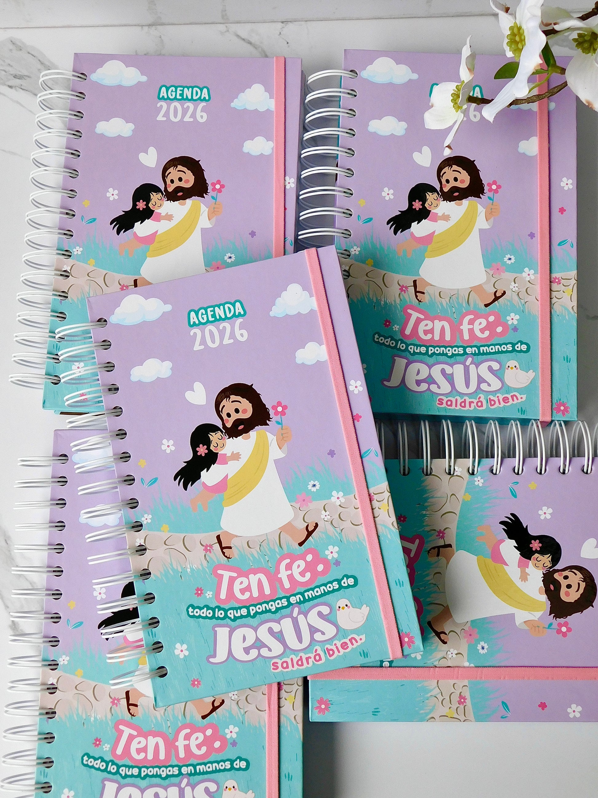 Una agenda creada para acompañarte durante todo el 2026 con mensajes, versículos e ilustraciones que te recordarán cada día que Jesús está contigo 🤍