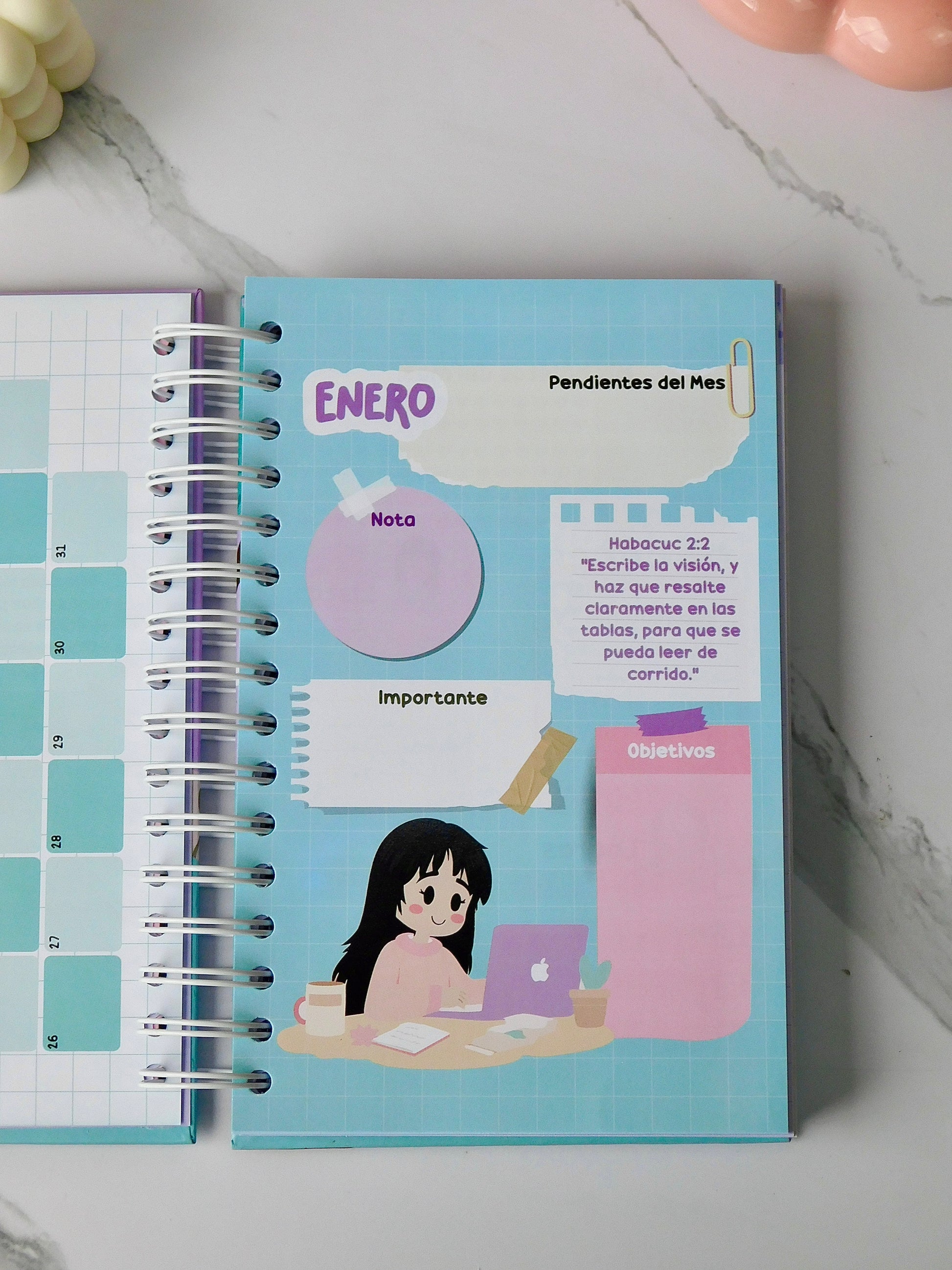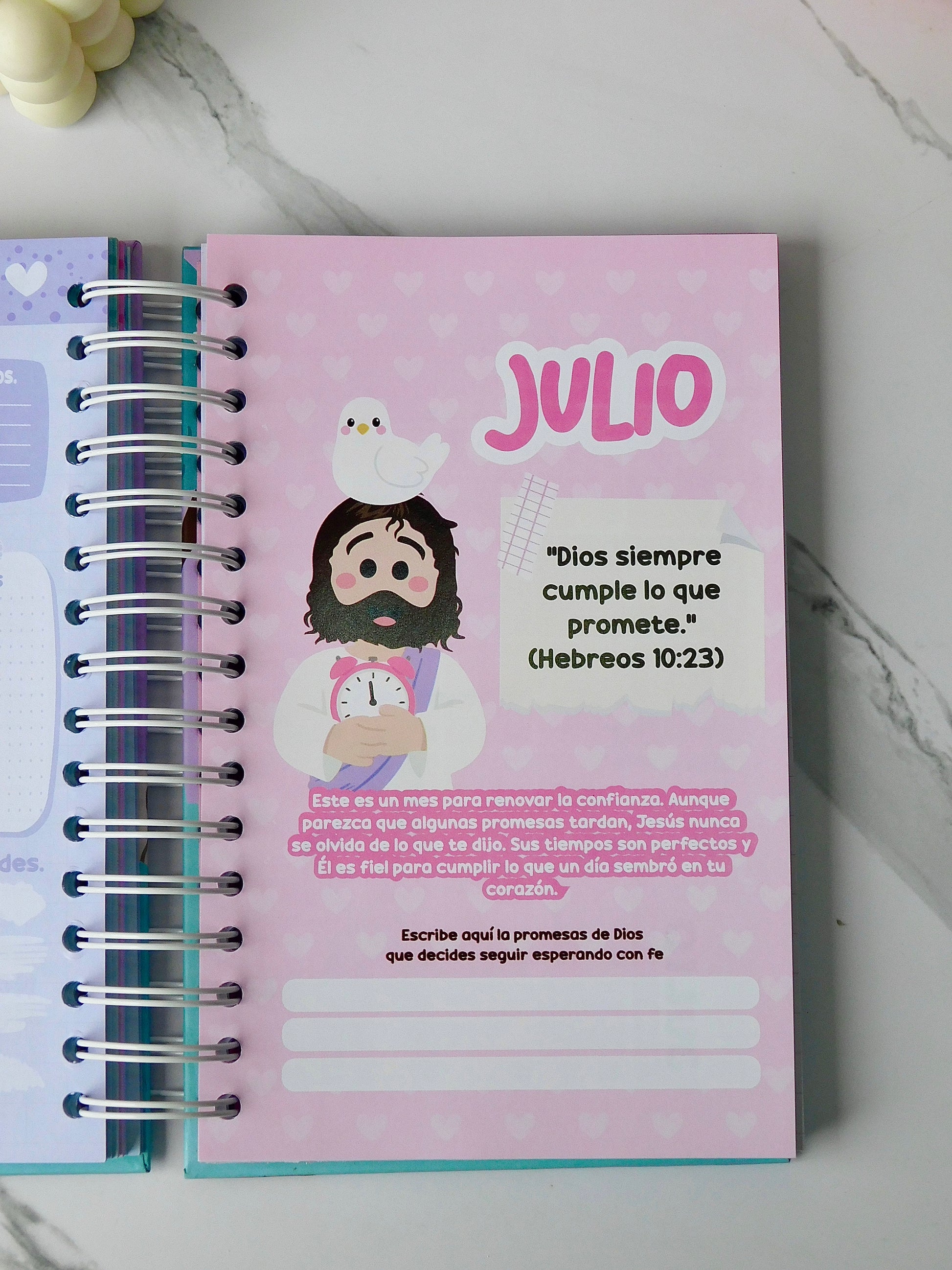 💖 Cada mes está diseñado con colores, versículos e ilustraciones distintos, para inspirarte a crecer en fe, organización y propósito.