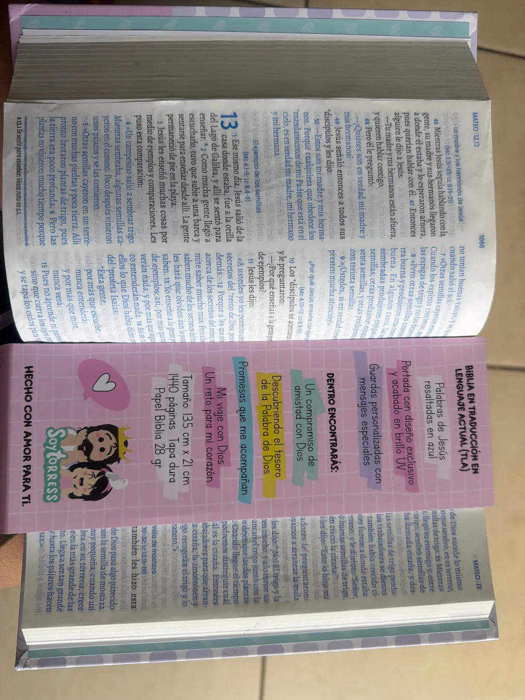 Delicada, inspiradora y única. Esta Biblia TLA fue diseñada con un estilo femenino, moderno y lleno de fe para recordarte lo valiosa que eres para Dios.