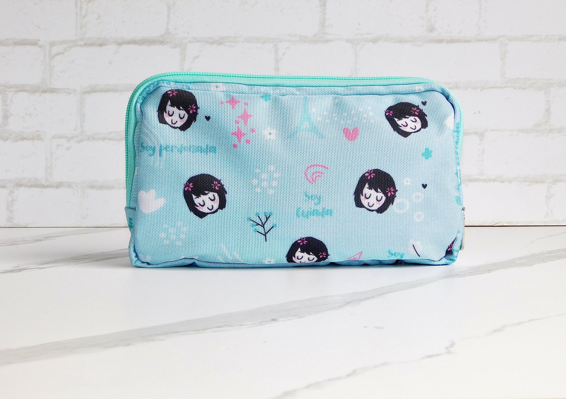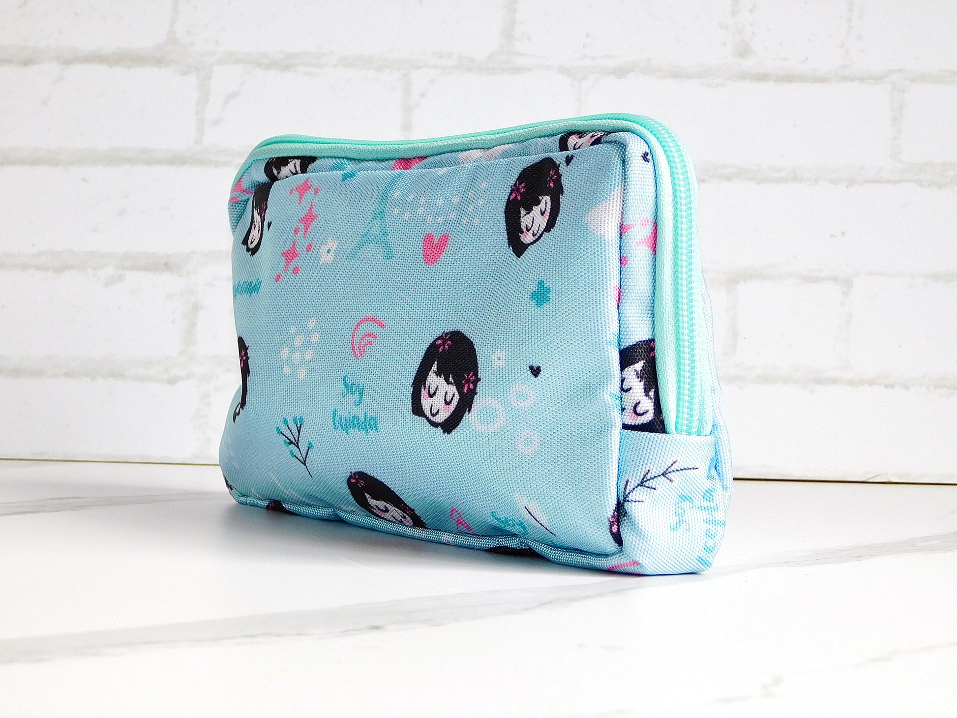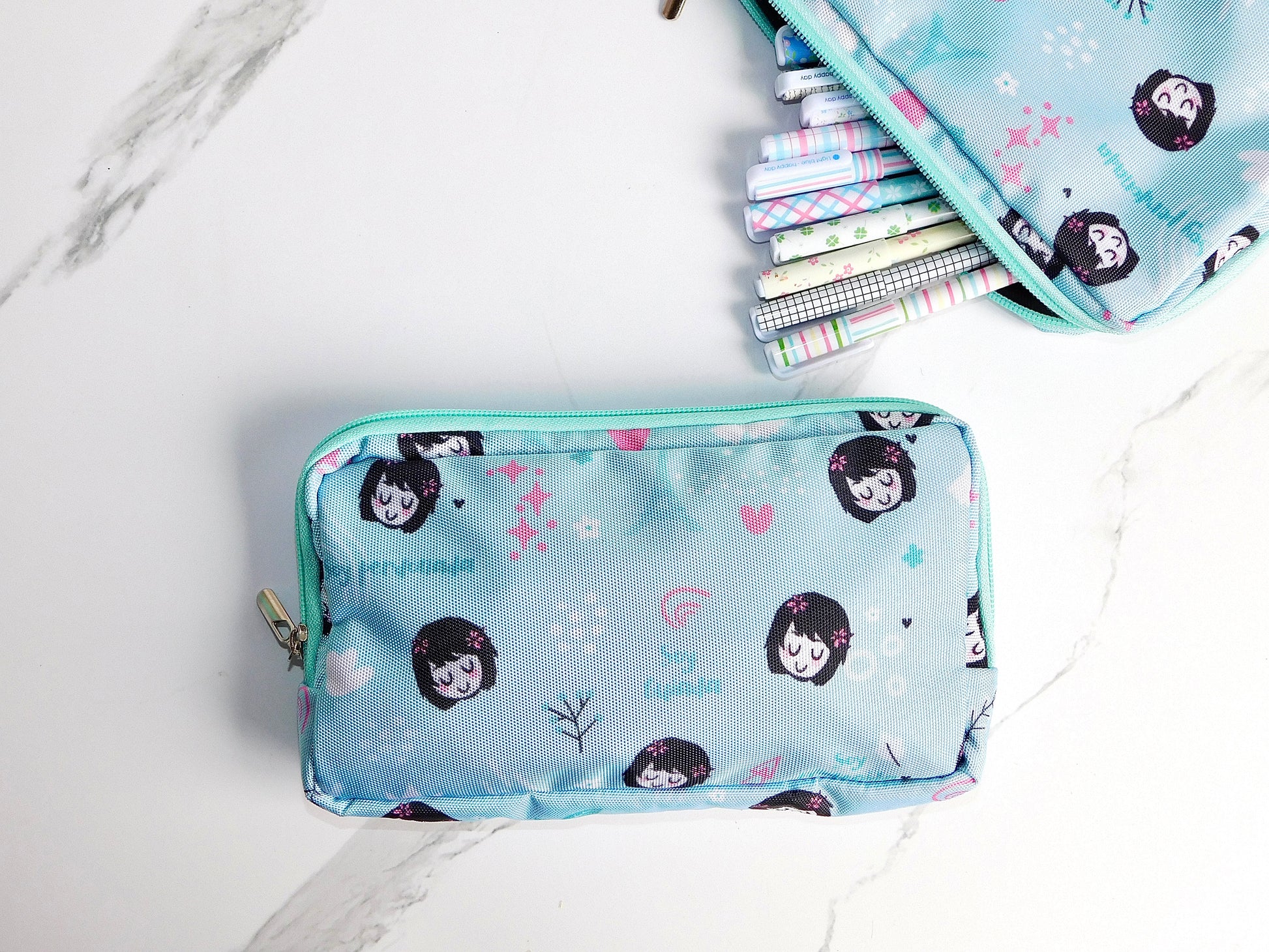 Cartuchera grande y de color blanco con un diseño cute, ideal para organizar tus lapiceros, maquillaje, y otros accesorios con estilo.