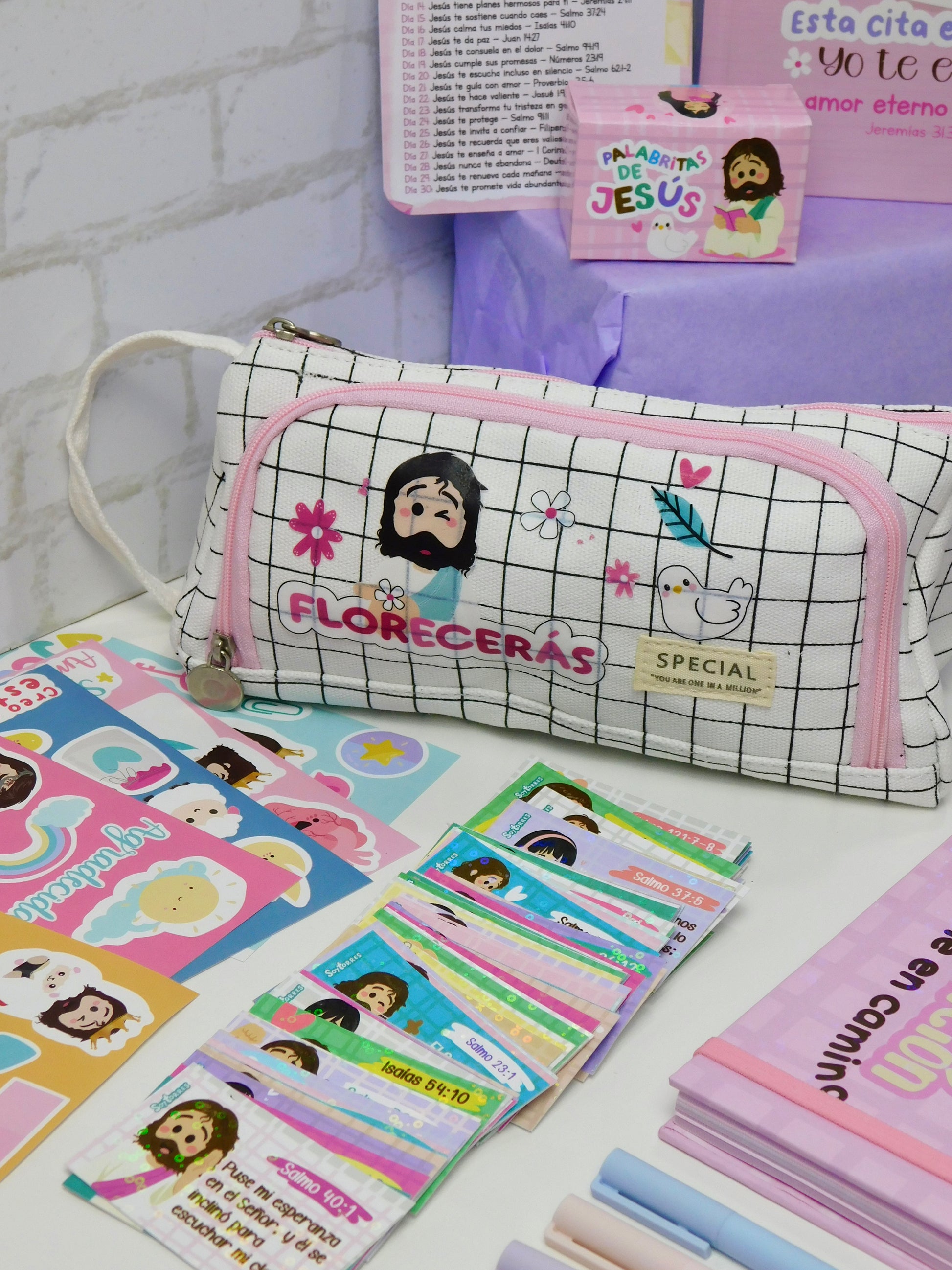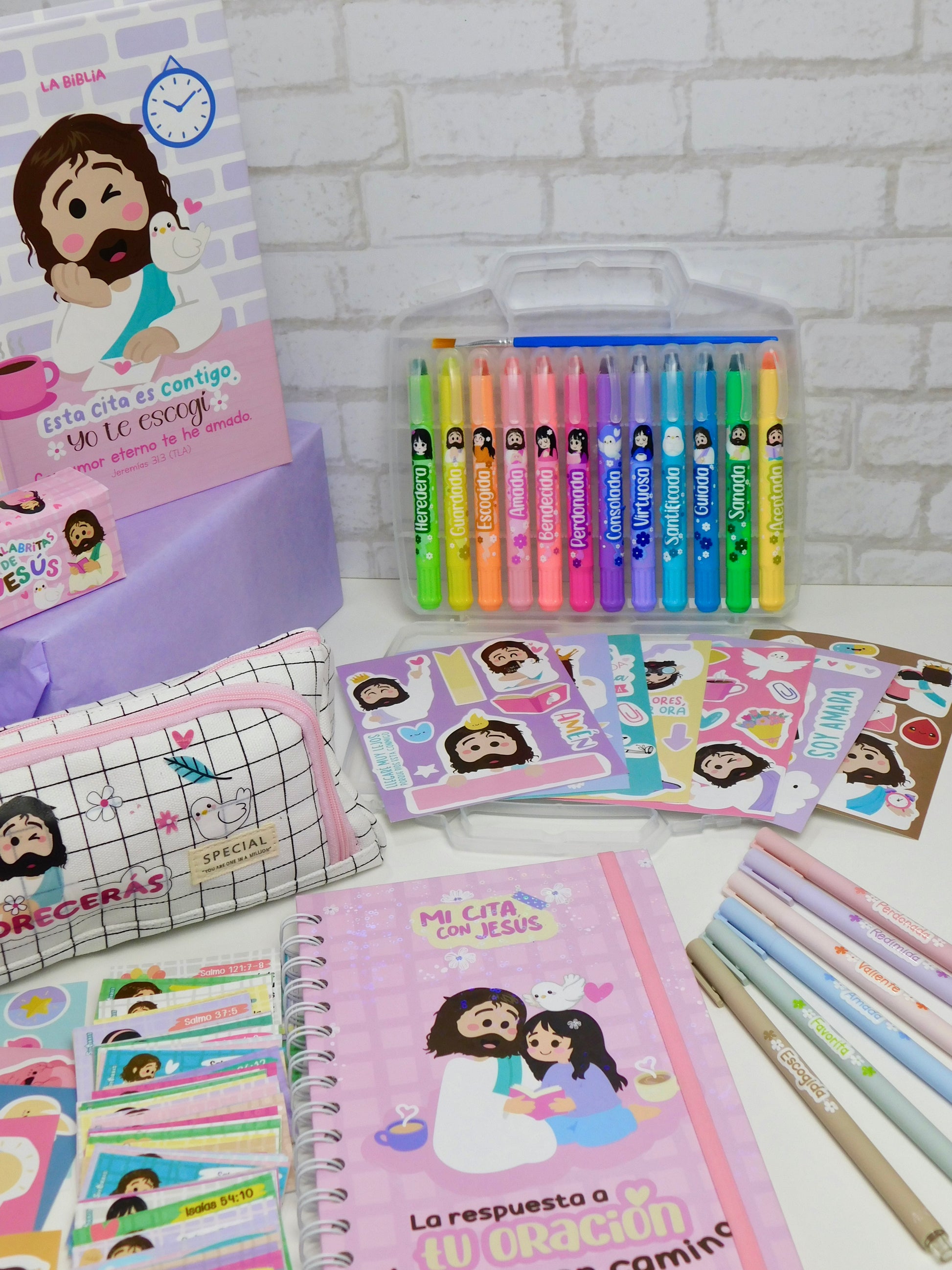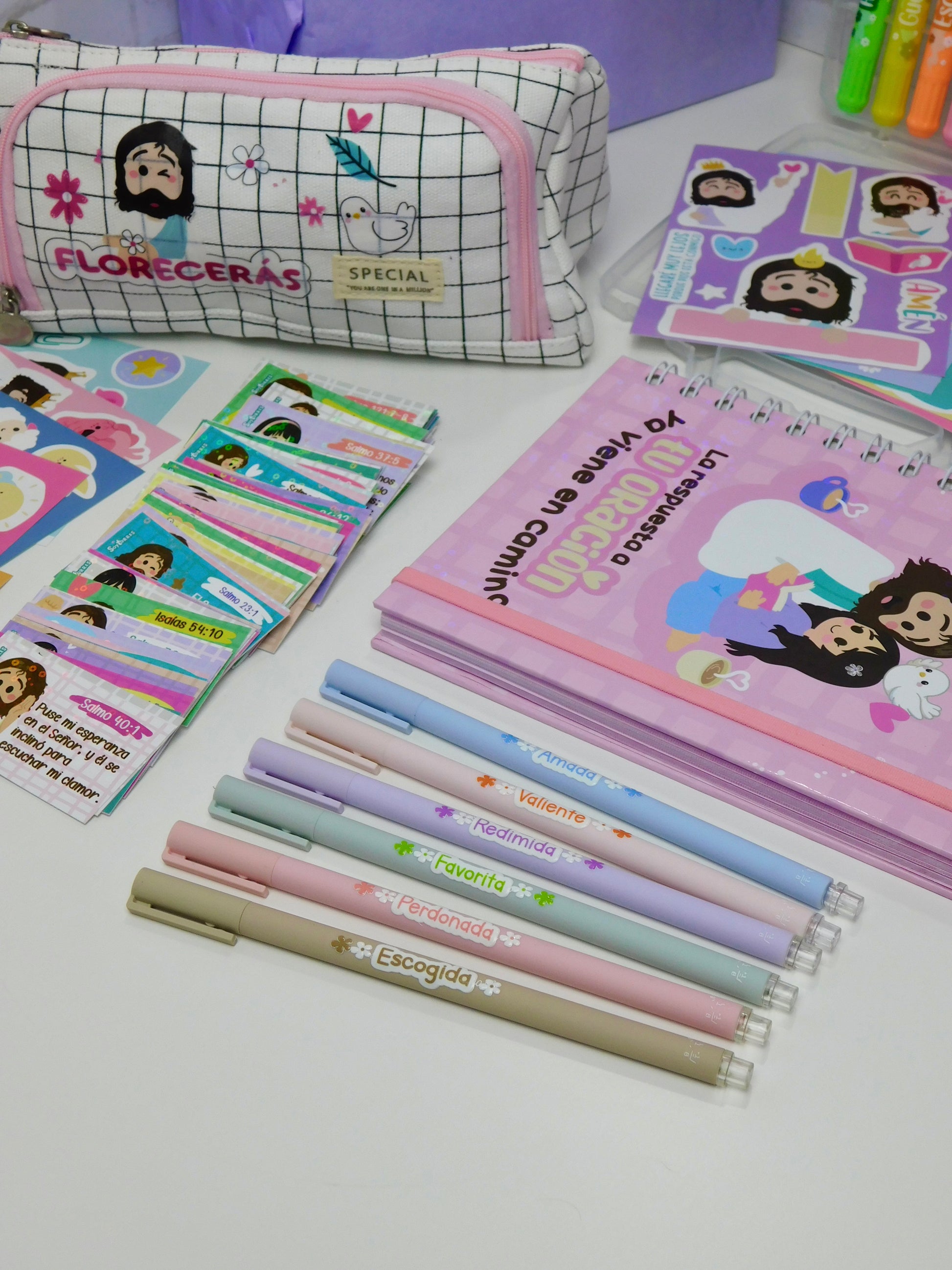 Este kit es mucho más que papelería: es una experiencia devocional que te acompaña en tu vida espiritual con belleza, ternura y propósito.