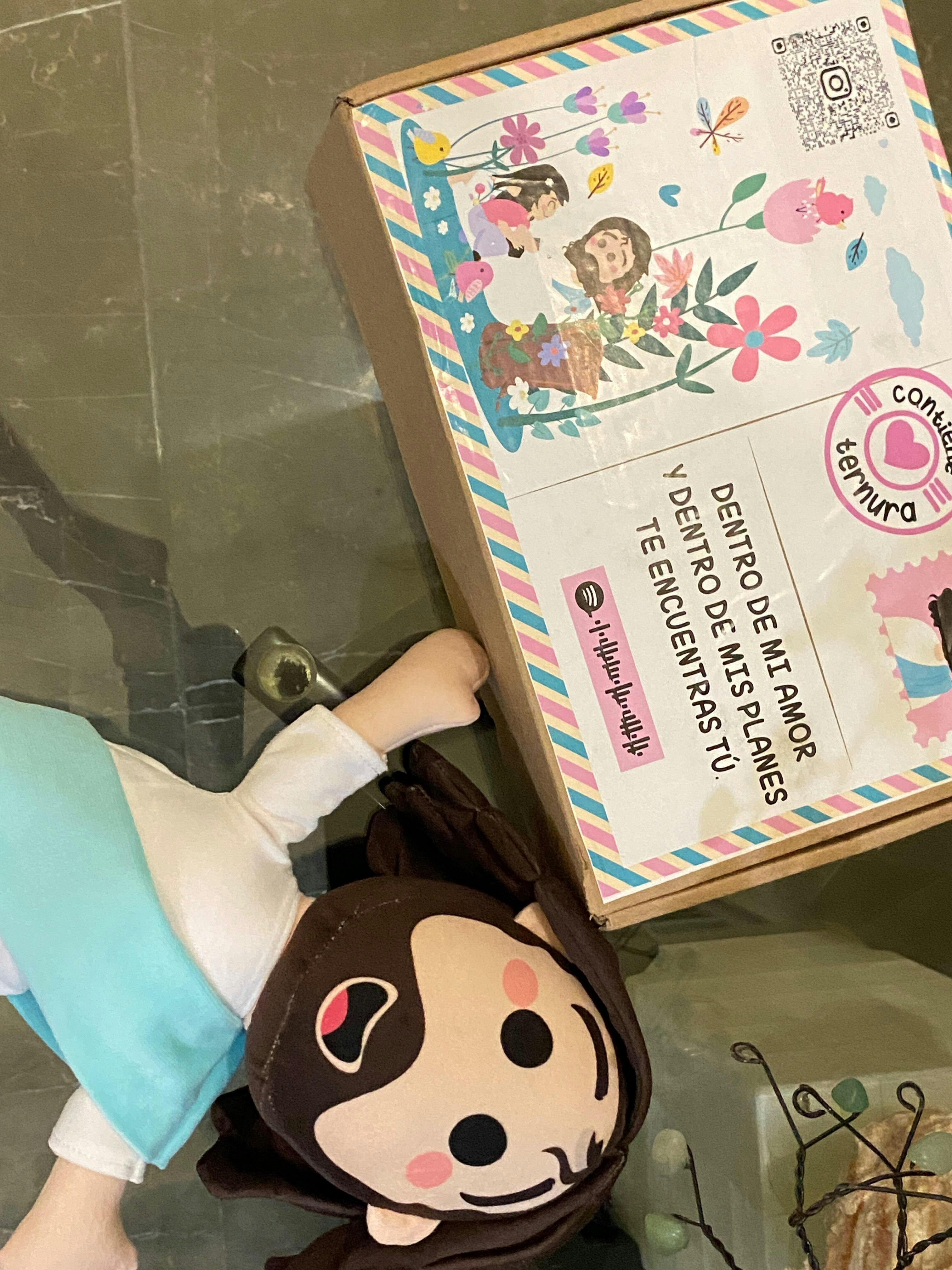 - Presentación especial: El peluche viene en una bolsita de telita y una cajita lista para regalar, e incluye una postal que añade un toque único.